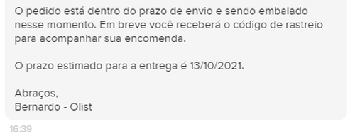 Iremos entrar em contato com o lojista solicitando o envio imediato do seu pedido.