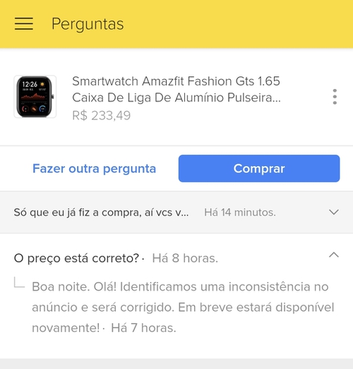Rapaz, ta no nível "barato demais pra ser verdade", ele é o dobro disso. Olist também não inspira muita confiança, mas sendo Olist e ML, quem quiser arriscar ou pega um smartwatch barato ou pega o dinheiro de volta.