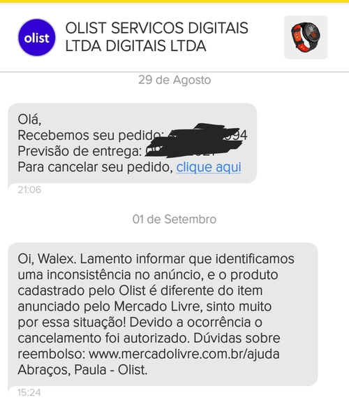 Só pra atualizar aí galera, tentei contato com a Olist e fiquei dois dias sem retorno, hoje pedi o cancelamento da compra e em menos de uma hora me responderam que foi cancelado com sucesso.