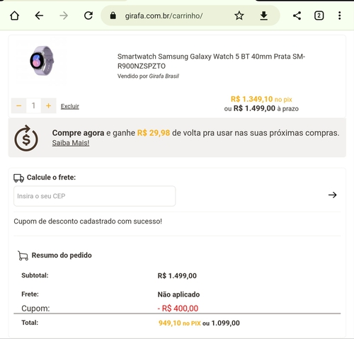 Ao comprar por meio de uma promoção em nosso site, o Pelando pode receber da loja parceira uma comissão sobre a venda.