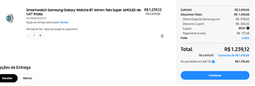 Smartwatch Samsung Galaxy Watch6 BT 44mm Tela Super AMOLED de 1.47" Grafite