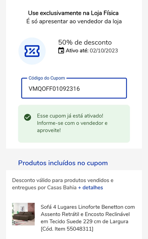 Pessoal, fui até a loja hoje, e realmente esse sofá saiu da lista e não funciona mais o cupom.