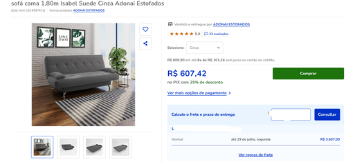 🌟 Conforto e praticidade com o Sofá Cama 1,80m Isabel Suede Cinza Adonai Estofados! 🌟