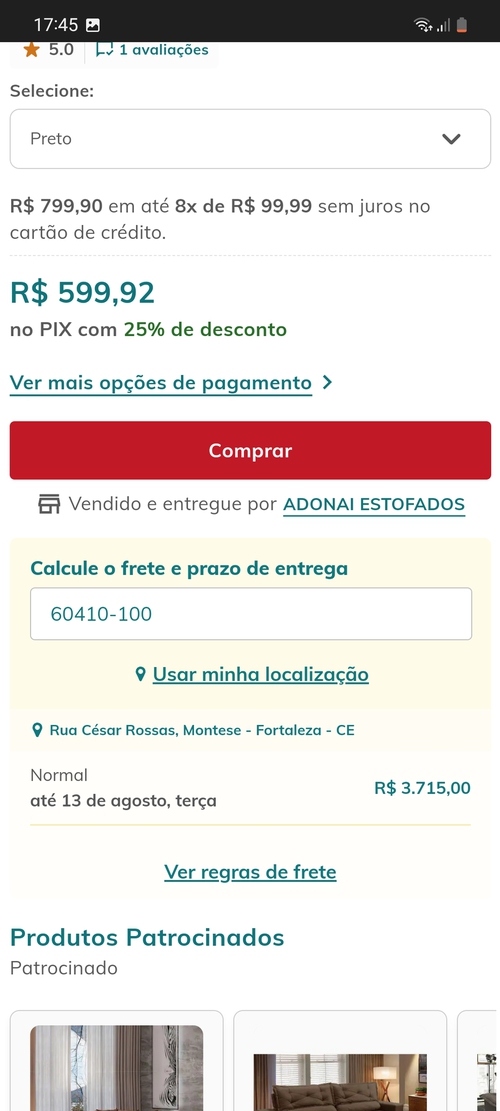 no propio site da fabricando o mesmo sofa está 799 + frete que é o mesmo