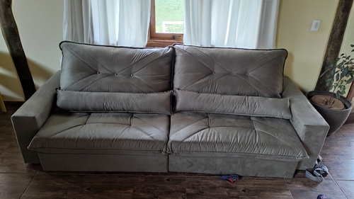 Sofá Retrátil/Reclinável Sevilha 3,00m Suede Velut Cinza c/ Molas Ensa