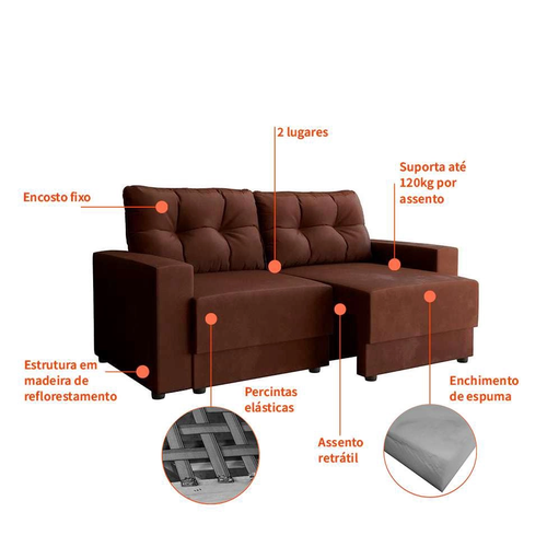 Sofá 2 Lugares Retrátil Lubeck Suede Marrom 140 cm