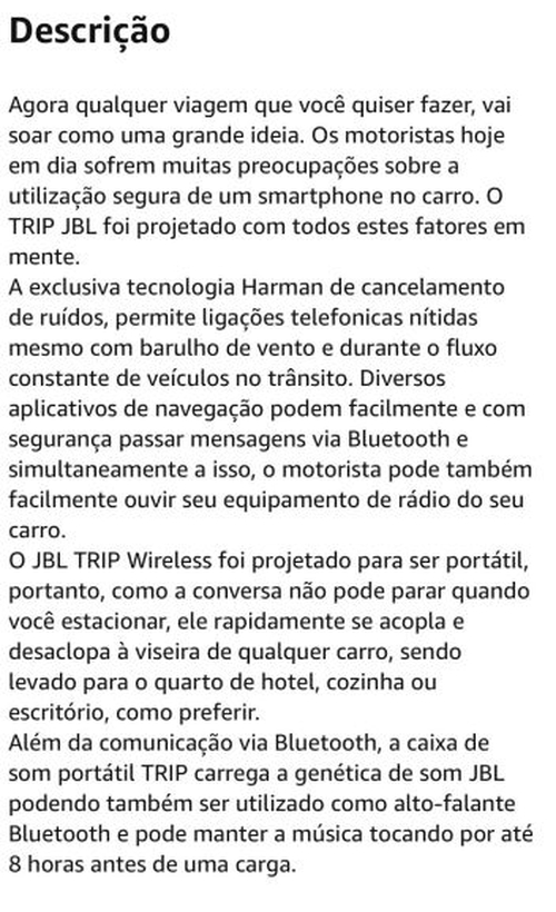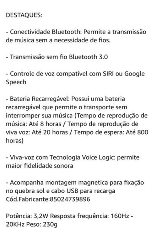 O foco dele é mais pra ligações viva voz do que pra ouvir música, acho que por isso a potência é menor. De qualquer forma, se for ver esse aparelho em outros sites, o preço dele é bem maior, cerca de 350 reais pra cima. Por 250 está um preço bom pra quem tem interesse na utilidade dele.
