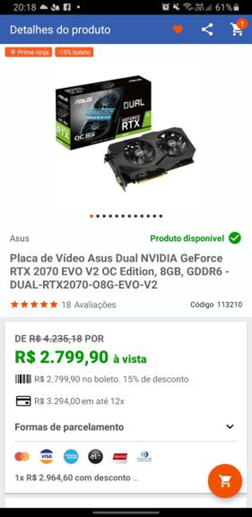 Ta com esse preço a meses, mas, inceramente? Vale mais pegar uma 2060 super com melhor construação por agora, ou esperar o lançamento da nova geração.