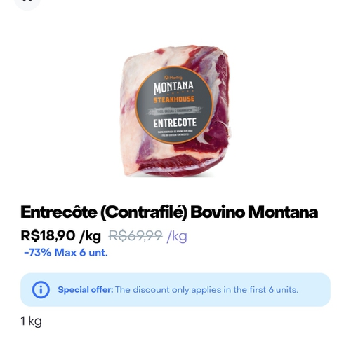 Tô pagando uns R$36 no pedido, então a carne tá saindo por R$29/kg. Já tô no quarto pedido