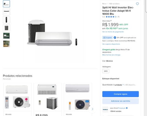 Split Hi Wall Inverter Electrolux Color Adapt Wi-fi 9000 Btu