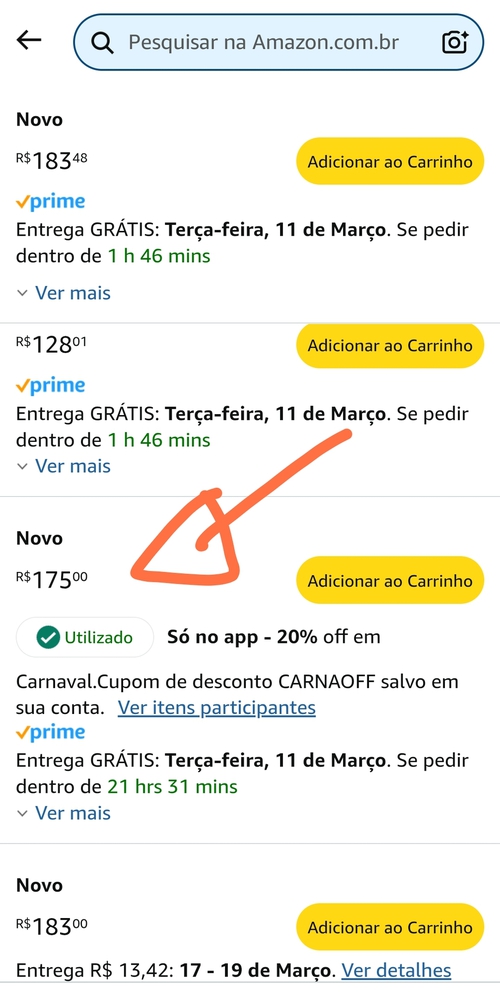 Senão conseguir chegar no valor, pesquise em OUTROS VENDEDORES tem q ser nesse valor 👇🏼