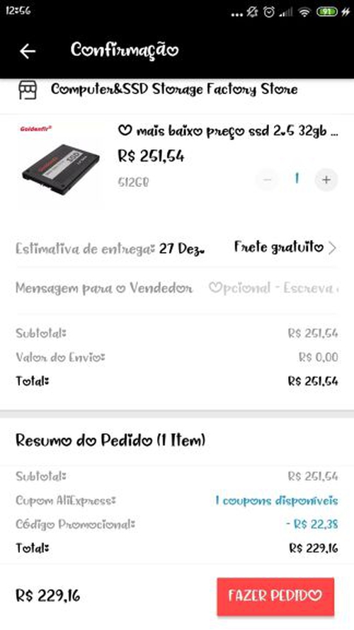 SSD 512GB GOLDENFIR leitura 580 mb/s gravação 550 mb/s | R$229,16