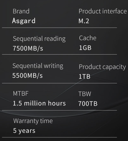 Ssd Asgard an4 1TB Gen4 m.2 2280 pcie 4.0 leitura 7500MB/s