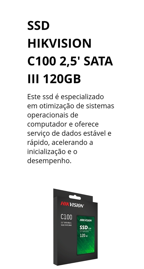 SSD Hikvision C100, 120GB, Sata III, Leitura 550MBs e Gravação 420MBs, HS-SSD-C100/120G