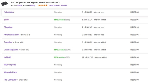 SSD Kingston 2.5´ 240GB A400 SATA III - R$ 141