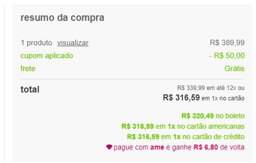 Consegui comprar por R$ 316,59 em 1x no cartão pelo App. Valeu