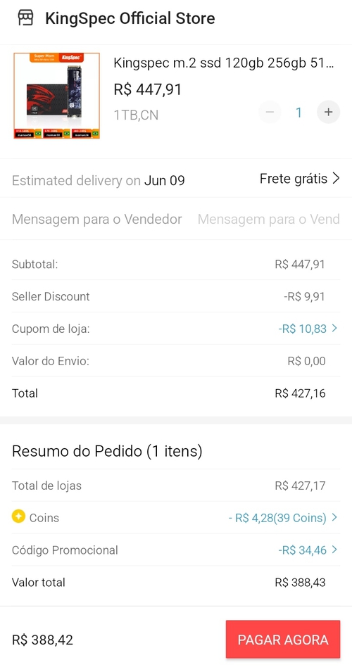Usar cupom do vendedor de R$ 10 + Moedas + Cupom 😉