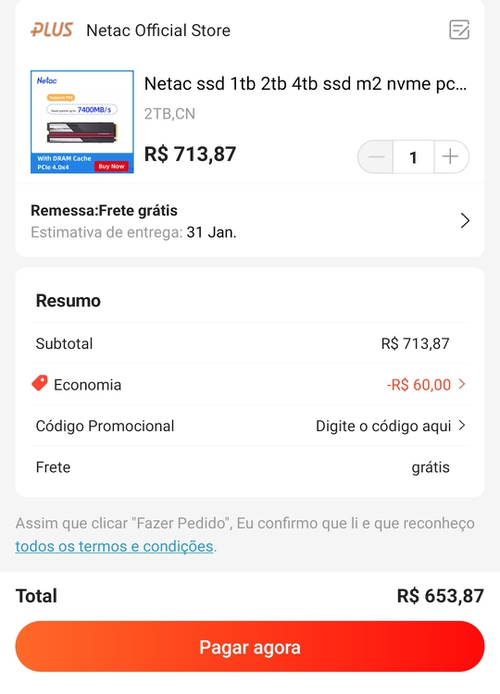 O Corsair mp600 de 2tb tá apenas 200 reais a mais, esse não compensa a qualidade é muito inferior