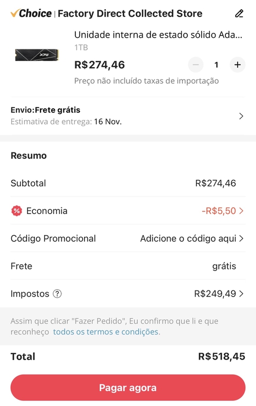 Cm o Imposto fica R$518,45