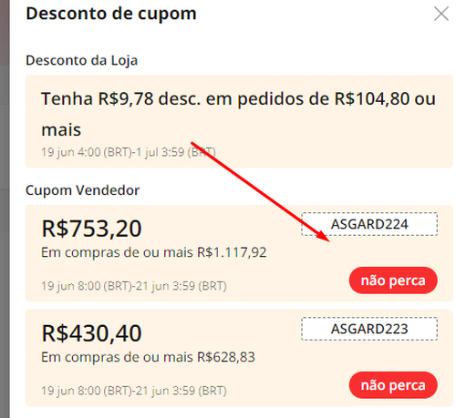 Esse cupom acabou, agora trm um de 440 mas nao vale a pena, comprei de outra marca por 400 ontem