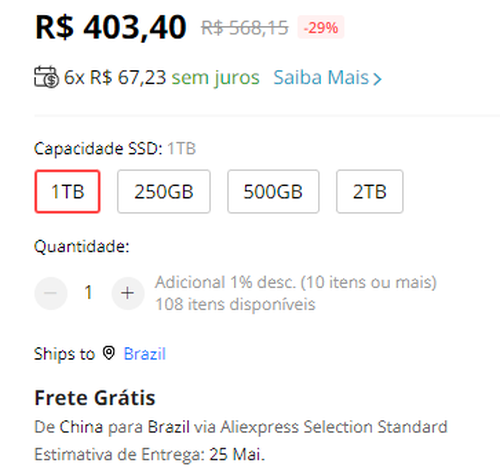 Então eu adquiri esse SSD NVME anunciado recentemente e vou utilizá-lo em uma case para SSD robusta e ultra rápida. Minha escolha foi pela case da UGREEN com velocidade de 1GB/s (a case está saindo por R$100,00).