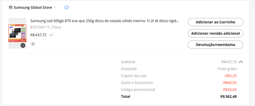 Comprei nessa mesma loja um ssd 2,5" da samsung. Zero problemas, inclusive, abri o ssd e verifiquei que os chips internos sao os originais...