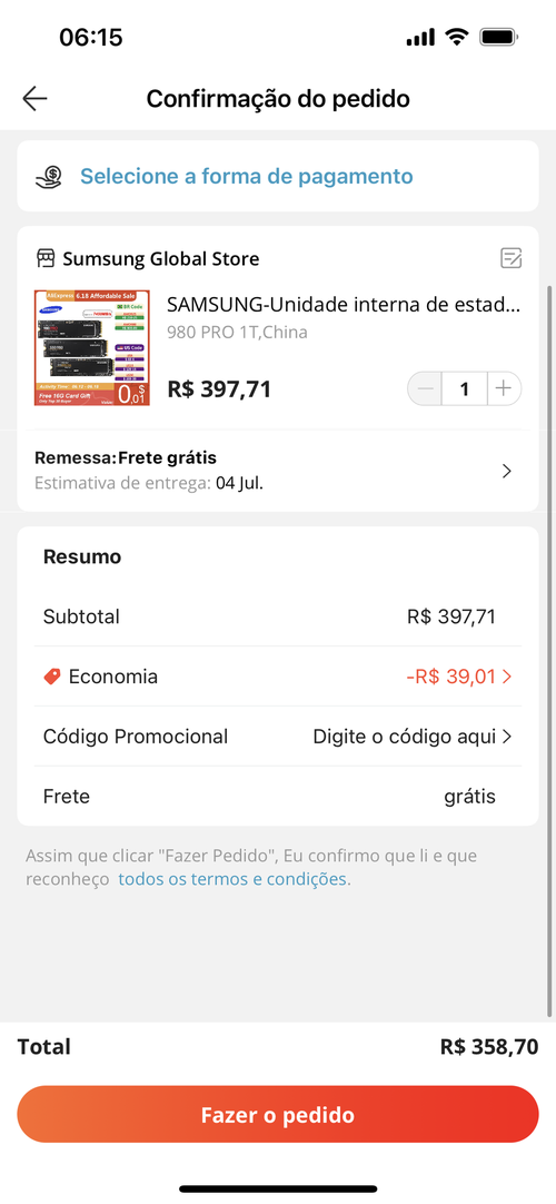Essa loja é a mesma que deu problema a outra vez, por esse valor eu recomendo o Netac NV7000 2tb ou se quer de marca tem o WD Black SN850x 1tb que é melhor que esse Samsung