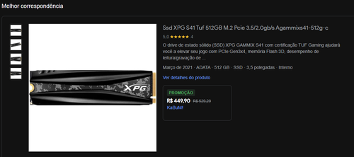- Desempenho (Max): leitura 3500MB/s, gravação 2400MB/s
