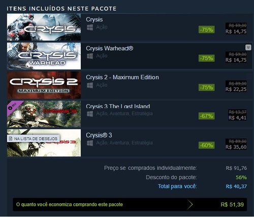[STEAM] Crysis Trilogy (87% OFF) | R$ 40
