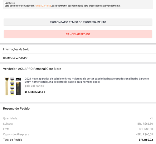 Peguei a máquina de cortar cabelo por 92 centavos kkk