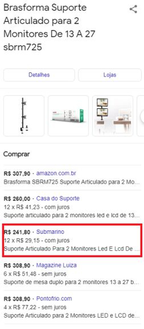 Suporte Articulado Para 2 Monitores Led E Lcd De 13" A 32” - Sbrm725 | R$242