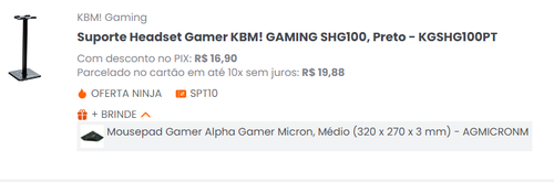 Suporte Headset Gamer KBM! GAMING SHG100, Preto + Mousepad Gamer (320 x 270 x 3 mm) Brinde
