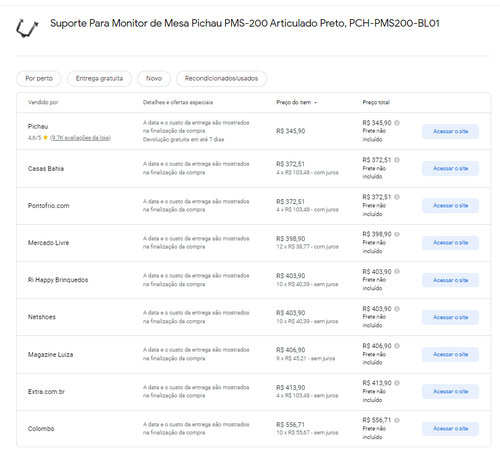 Não sou um fã ferrenho da Multilaser, mas o modelo AC372 se encontra fácil por esse preço e até menos em algumas promoções. Ele possui o pistão a gás e por mais que o site mencione apenas suportar VESA 100x100 estou usando ele sem nenhuma adaptação no padrão 75x75. Segundo a Multilaser ele suporta até 8 kg por braço, tanto que uso no Agon de 32 polegadas e um Acer de 24 numa boa.