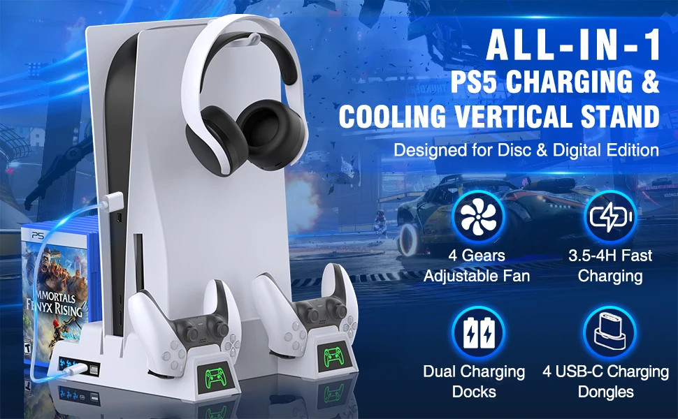Suporte vertical para ps5 com cooler, suporte para controles e jogos