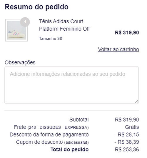 Somente 38, 10% OFF no pix + 12% OFF com cupom ADIDASNAFUT, frete grátis pra SP
