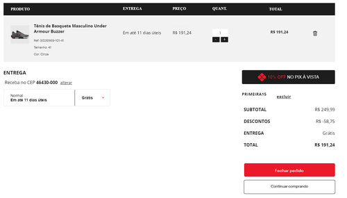 • É possível conseguir mais 10% OFF (ou apenas 10% off se desejar parcelar em até 12x s/ juros) se cadastrando no site.