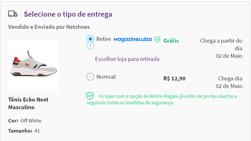 Frete Grátis para retirada na loja Magazine Luiza
