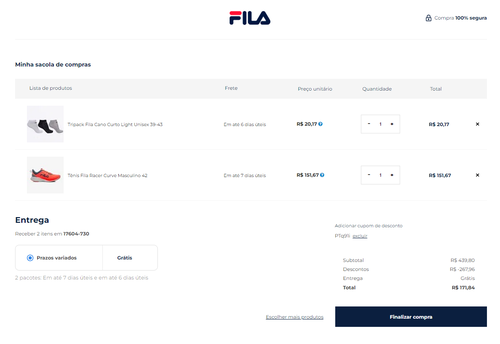 Aqui saiu por 151 o Tênis e 20 a meia...