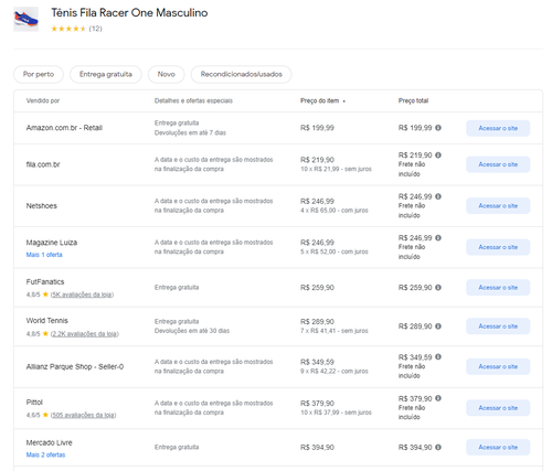 Menor preço segundo o Google Shopping