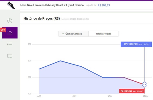 - Menor preço dos últimos 6 meses segundo o Zoom