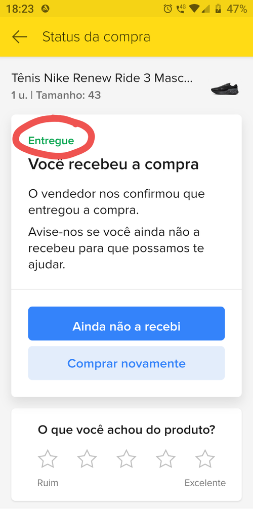 To achando que não vou receber esse tênis, marca enviado mas nem código de rastreio tem. Vai ser igual a do brother ai, daqui a pouco aparece recebido sem eu ter recebido.