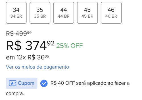 Somente tamanhos 34,35,44,45,46
