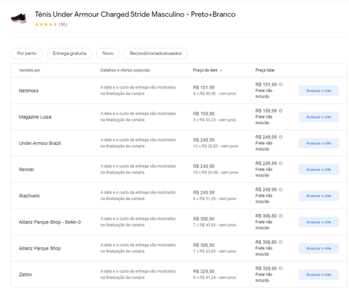Menor preço segundo o Google Shopping
