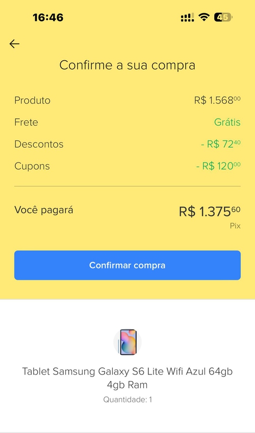 Tablet Samsung Galaxy S6 Lite Wifi Azul 64gb 4gb Ram