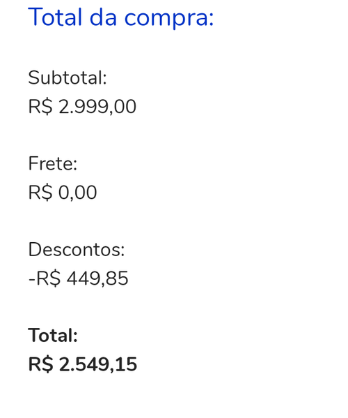 cupom CAMAROTE tirando 15%, permitindo 2.549,15 até 10x, ao invés de 2.999,00.