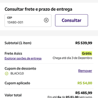 Cupom inválido para o tênis.