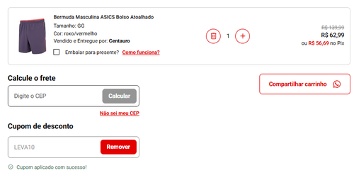 R$ 68,84 no Pix com o cupom Asics15, infelizmente a promoção acabou, não comprei =/.