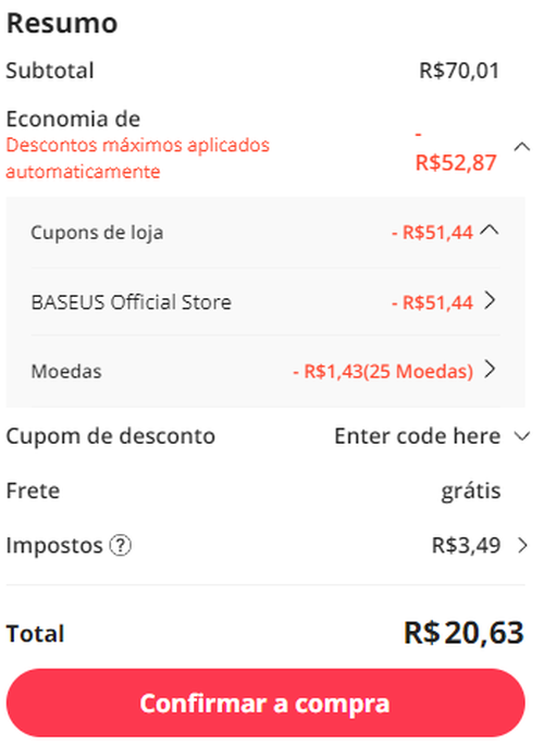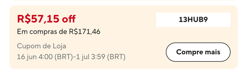 Só resgatar Cupom do vendedor (R$51,44 off), resgate na loja