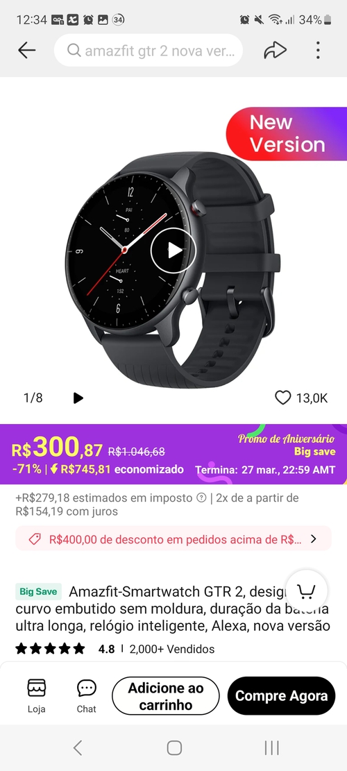[Taxa inclusa] Amazfit Gtr 2 Smartwatch Alexa Built-in Design De Moldura Curv
