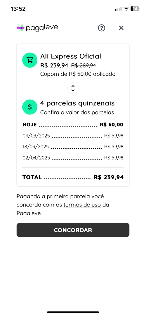 1 - selecione como pagamento o PagaLeve (pix parcelado)